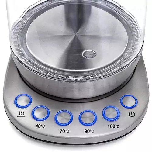 Современный электрочайник с терморегулятором. Он не только кипятит воду, но и нагревает её до заданной температуры, что особенно удобно при заваривании разных сортов чая, а также при приготовлении детского питания.